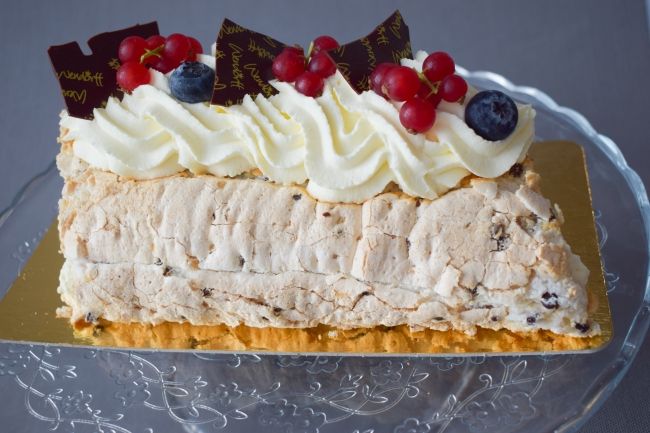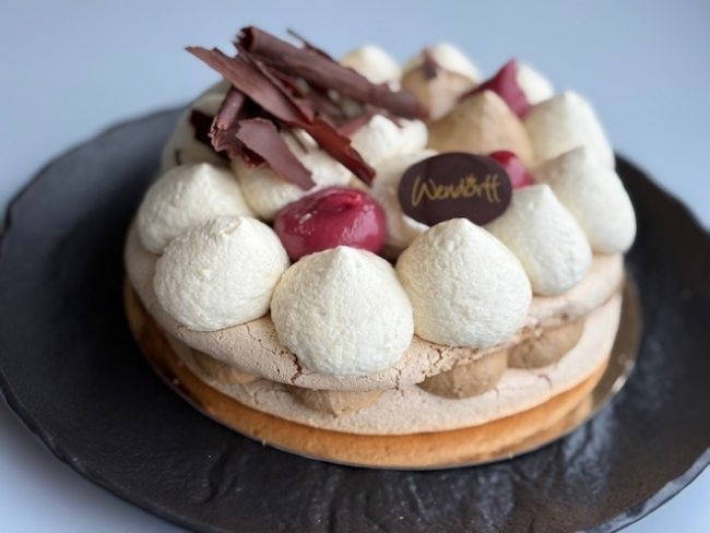 Sweet Cappuccino (Fragilitebunde, Vanilje-Sarah Bernhard, Kaffecreme, valnødder i rom, hindbær cremeux)